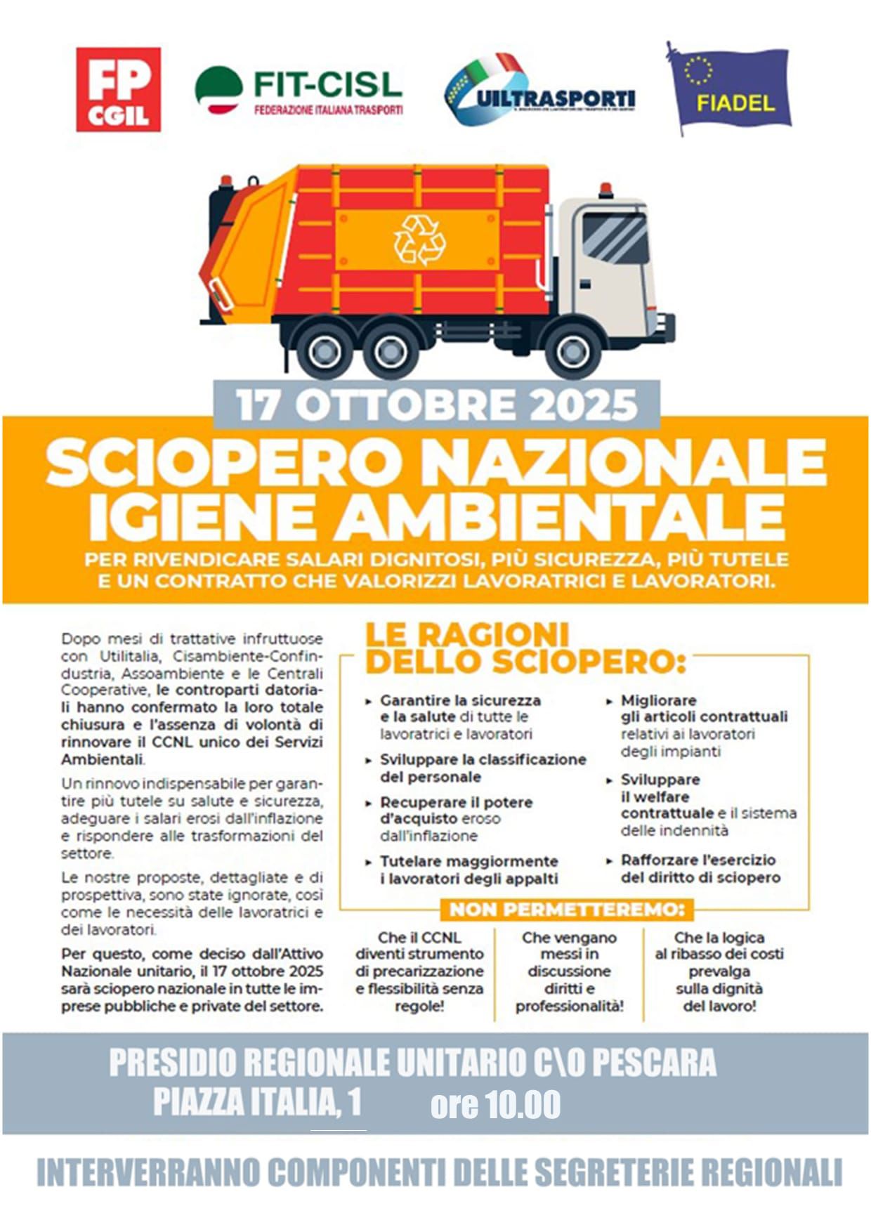 13 Ottobre 2025 | 20:40 · 17 Ottobre 2025 – SCIOPERO NAZIONALE IGIENE AMBIENTALE